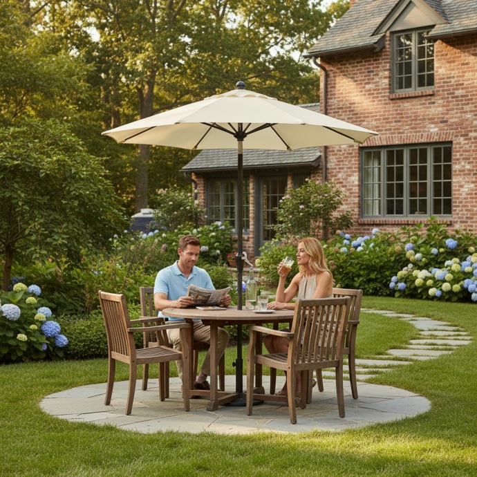 Woods For Home Patio Umbrella is designed with simple and natural style, which fits the outdoor patio aesthetics and balances practicality and beauty. The ample shading area can effectively block ultraviolet rays and strong sunlight, creating a cool and comfortable resting space for patios, terraces and gardens. It matches wooden outdoor furniture to show more natural texture, allowing you to enjoy a comfortable time outdoors calmly and unlock a new way of patio leisure.